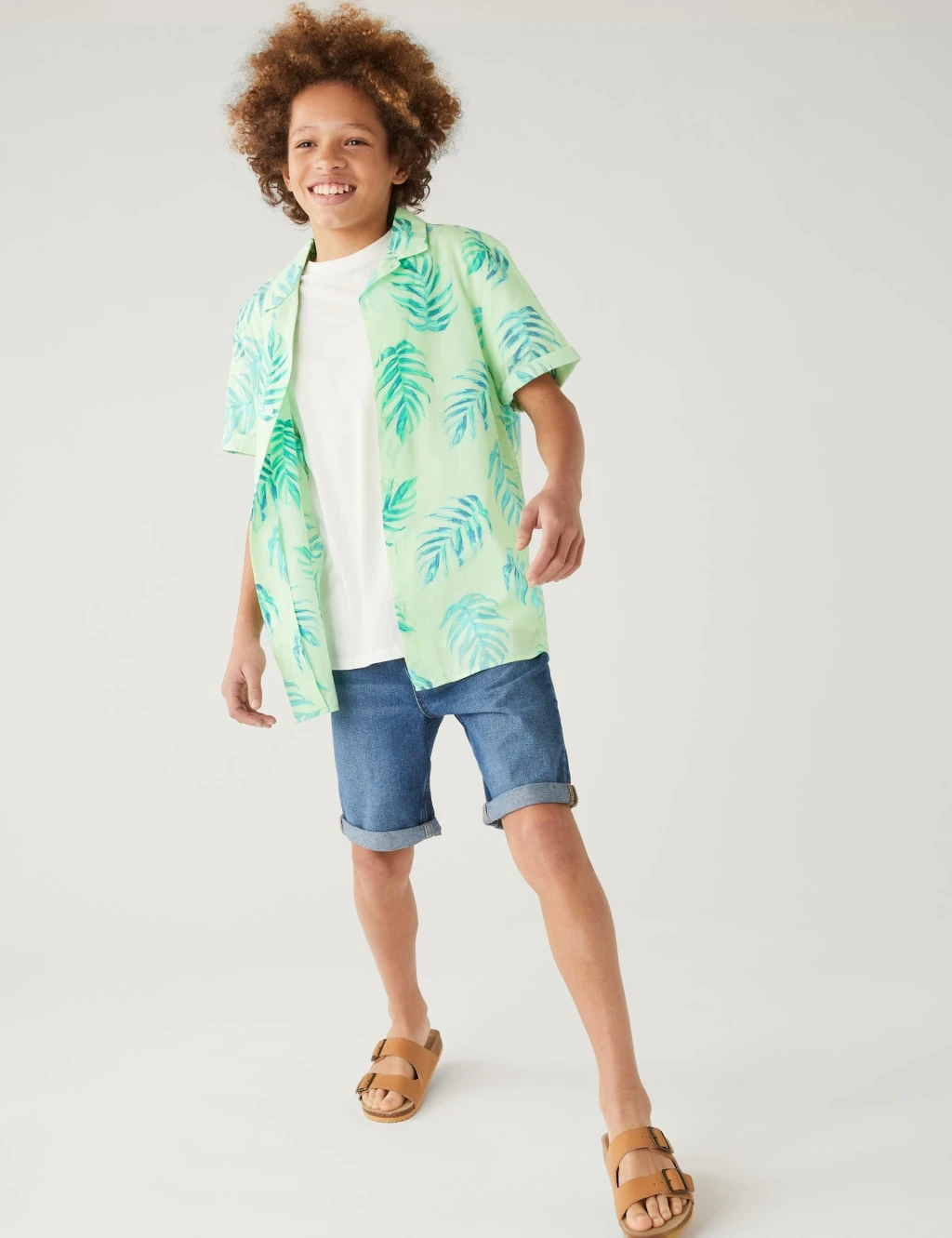 2pc Cotton Blend Leaf Shirt & T-Shirt Set (6-16 Yrs)