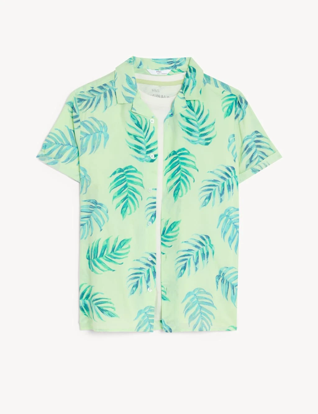 Crafted from a lightweight cotton-modal blend, this two-piece set is the stuff tropical dreams are made of. Comfy regular fit. Includes a leaf print shirt with breezy short sleeves and a plain t-shirt.