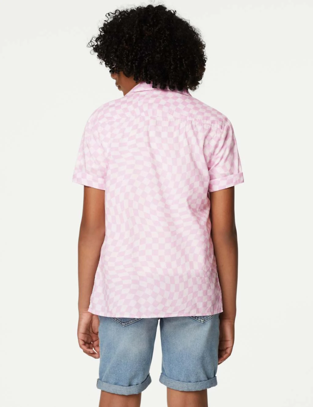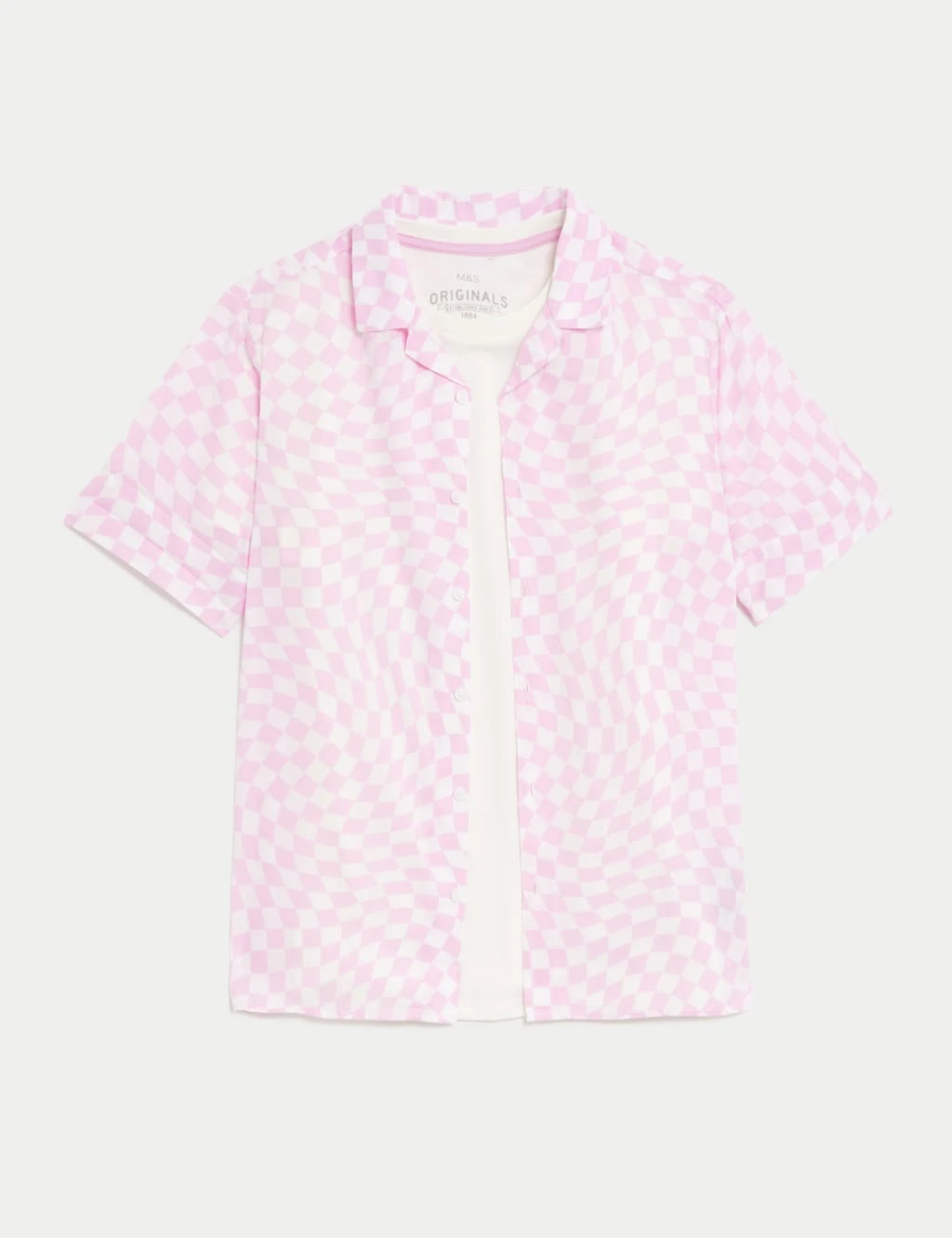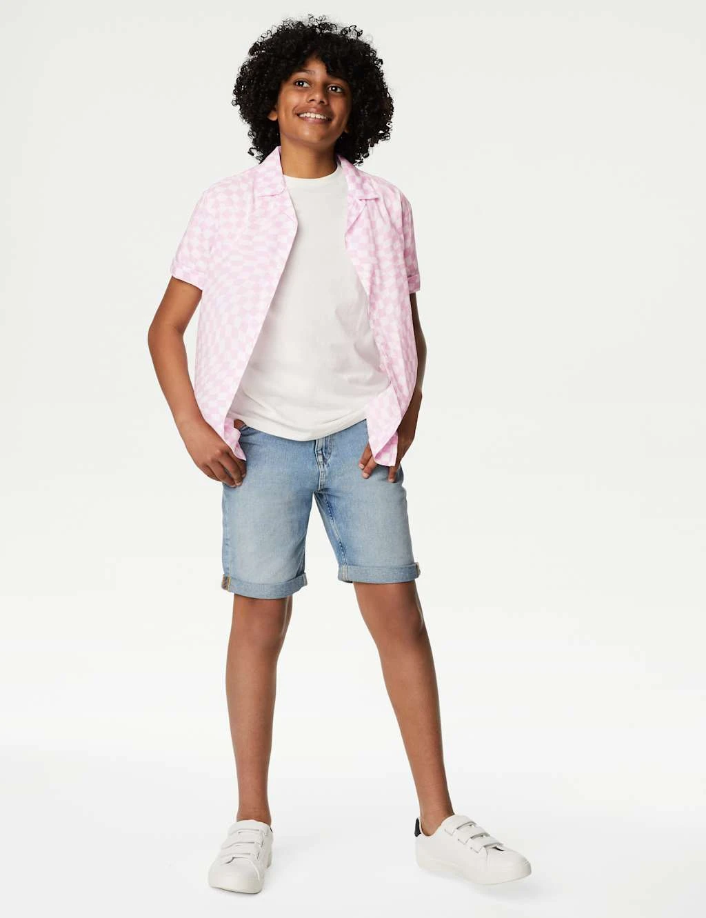 This cotton-rich shirt and t-shirt ensemble has a cool skater vibe. Made in a regular fit, from light, breezy fabric. The checked shirt features a collar neckline and rolled-up short sleeves for a smart-casual look. The t-shirt is plain with a classic round neckline.
