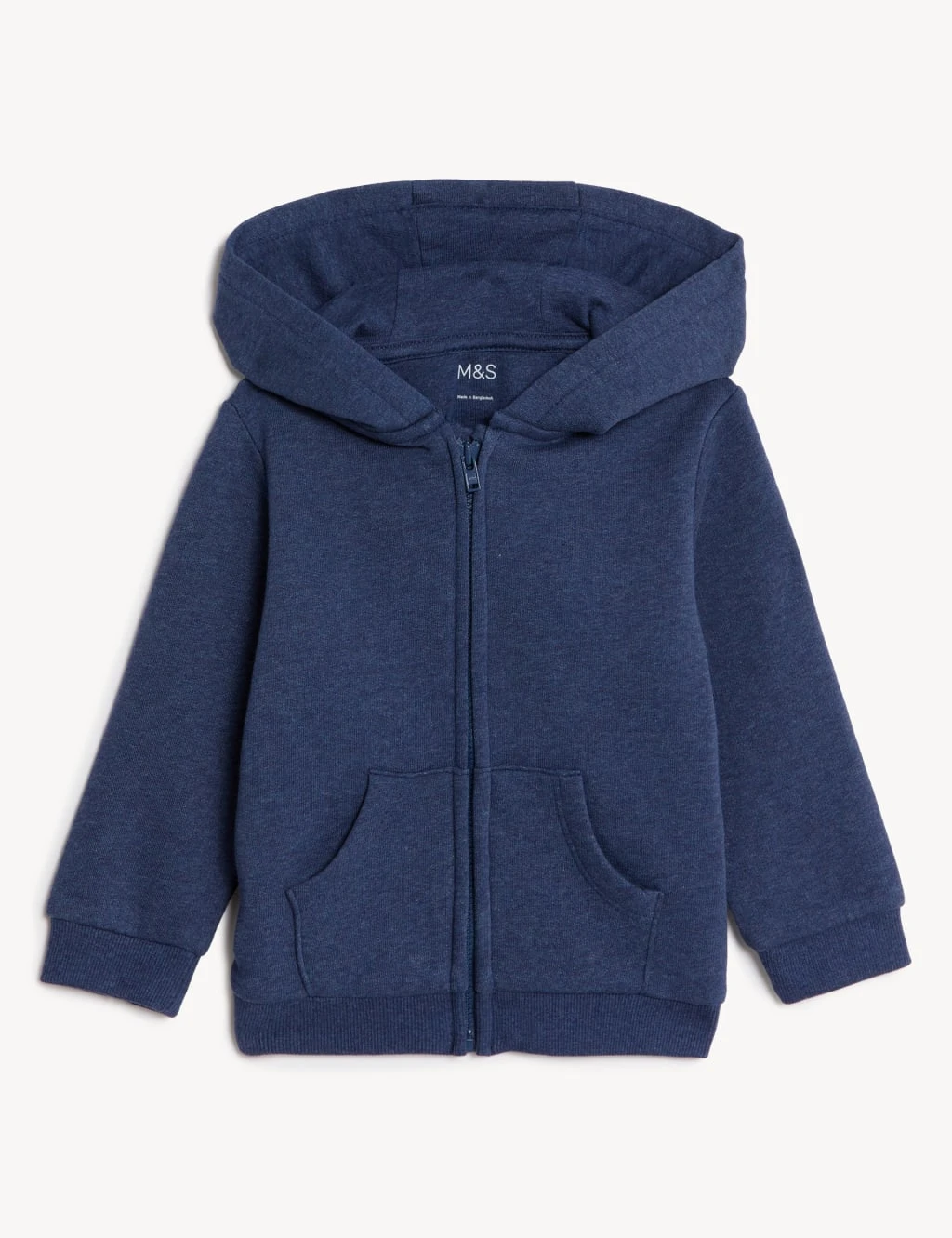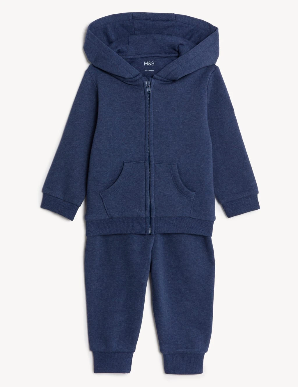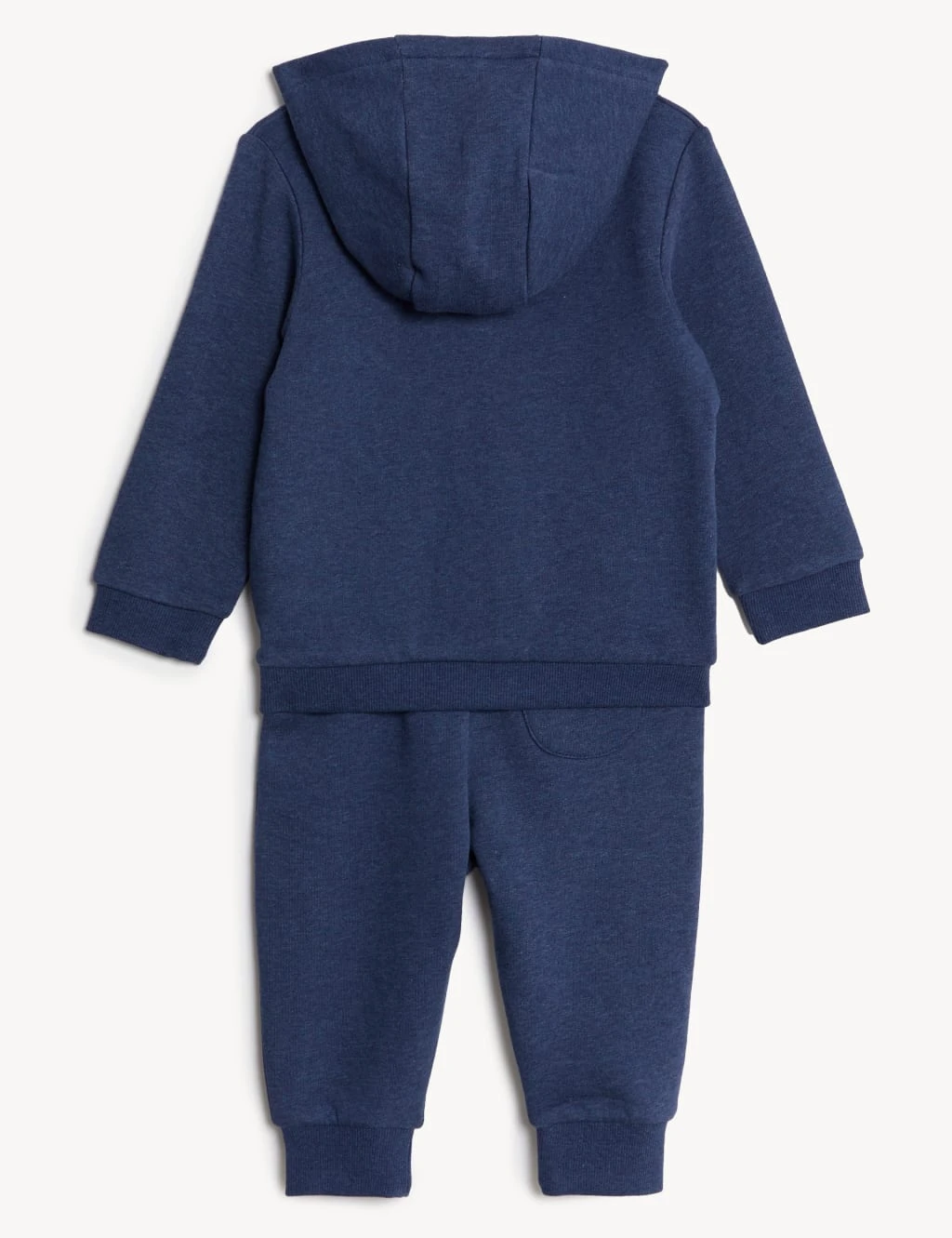 This classic cotton-rich outfit is perfect for daytime adventures. Two-piece set includes a zip-through hoodie with handy front pockets. Long bottoms have a comfy drawstring fastening and are cuffed at the ankle for a casual feel.