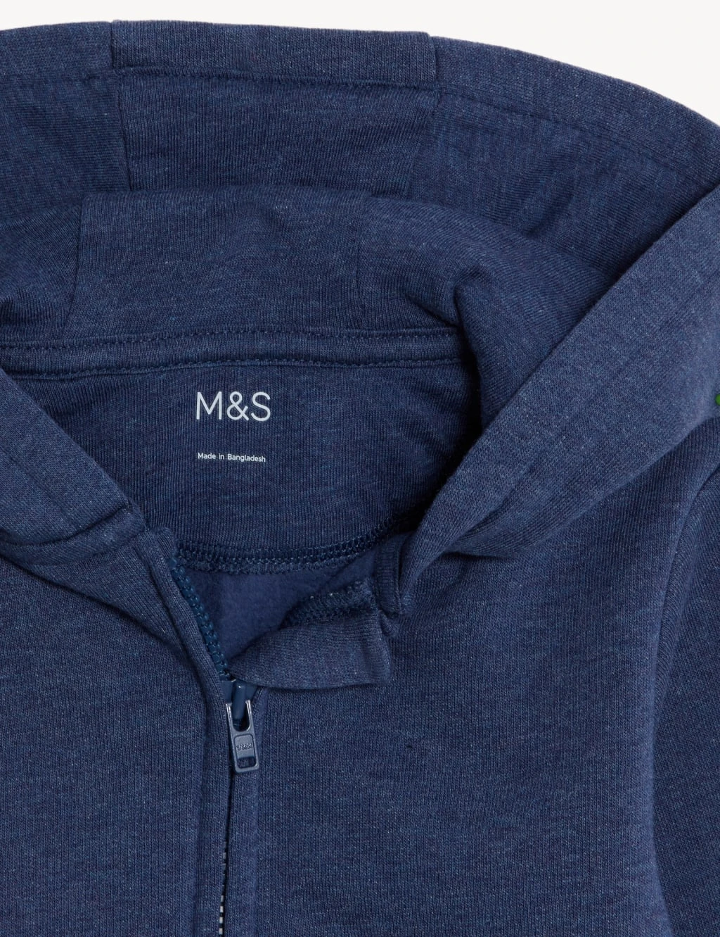 Top and bottom – 85% cotton, 15% polyester (exclusive of trimmings), Ribbing – 95% cotton, 5% elastane, Hood lining (of a product) – 100% cotton