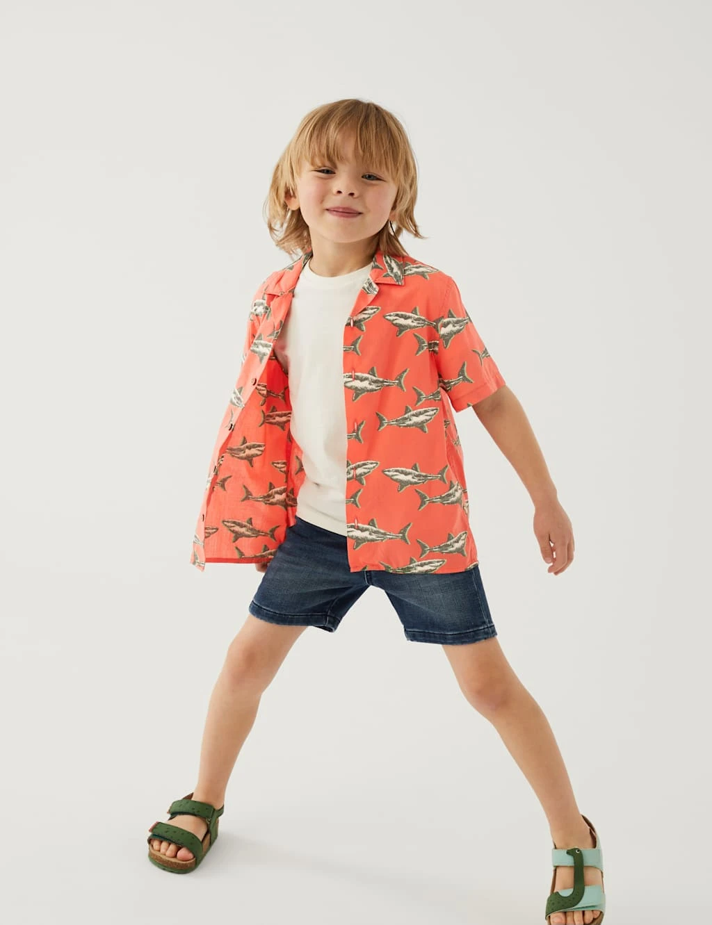 Little shark lovers will appreciate this bold, cotton-rich shirt and t-shirt set. Both pieces are designed in a comfy regular fit. Collared, button-down shirt with a vibrant print, plus a plain t-shirt for layering underneath.