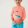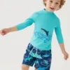 Kids can play on the beach in this roarsome dinosaur swim set. The regular fit outfit includes an all-in-one with three-quarter sleeves and a front zip for easy dressing. Paired with a matching hat. Both are made from Sun Smart fabric, which is endorsed by the British Skin Foundation for helping to protect against harmful UV rays. Chlorine-resistant finish will keep the swimwear looking newer for longer.