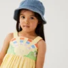 This pure cotton dress is perfect for those sunny playdates and parties. Short-sleeved design with a neat square neck, cut to a comfy regular fit. Complete with fun pom-pom trims on the sleeves and skirt, plus a deep frill at the hem that features a pretty ric-rac trim. This dress comes with a matching scrunchie for a coordinated look.