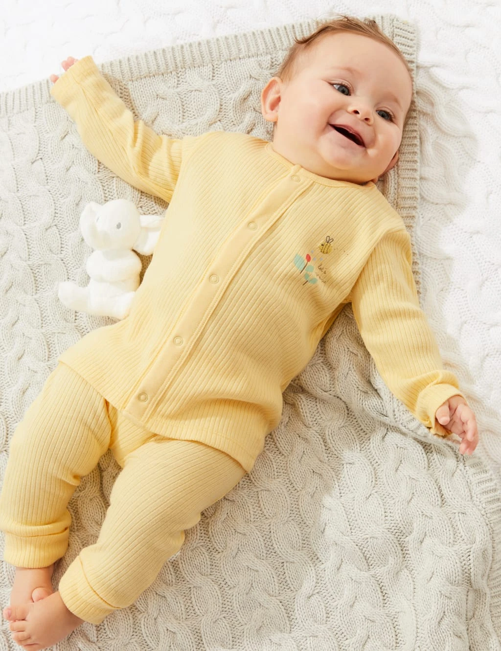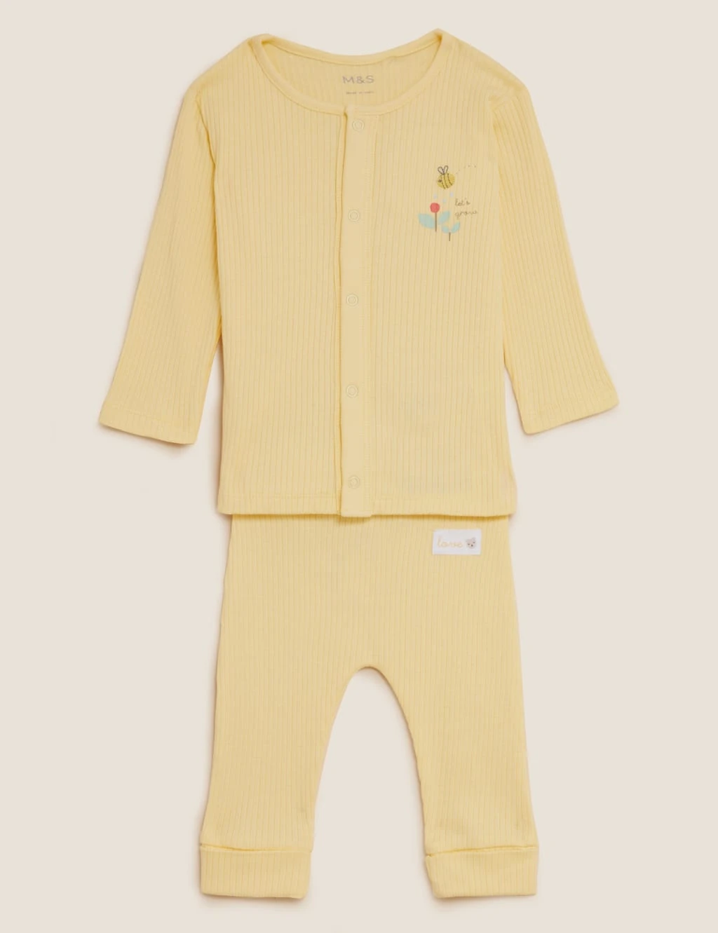They’ll feel comfortable enough to explore in this pure cotton outfit made from textured, ribbed fabric. The cosy long-sleeved top features a front placket with popper fastenings to make dressing easy and embroidered detailing for a pretty fish. The leggings have a cute woven badge along with an adjustable waist and adjustable turn-back cuffs that will grow with your child. Simply unpick and press and they’ll last all year long. We only ever use responsibly sourced cotton for our clothes.
