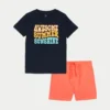 They’ll be ready to level up in this cotton-rich jersey outfit, featuring an eye-catching gaming print. The two-piece, regular-fitting set comprises a comfy round-necked t-shirt with a fun controller graphic, plus a pair of matching shorts. The shorts are secured with a drawstring tie and have two handy side pockets.