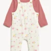 They’ll look super cute in this pure cotton knitted outfit. The set includes a cosy long-sleeved top with pretty frills on the shoulders and a woven badge at the hem. Button fastening at the back makes dressing easy. The knicker-style bottoms feature a bow and scalloped edge on the waistband and comfy ribbed trims. We only ever use responsibly sourced cotton for our clothes.