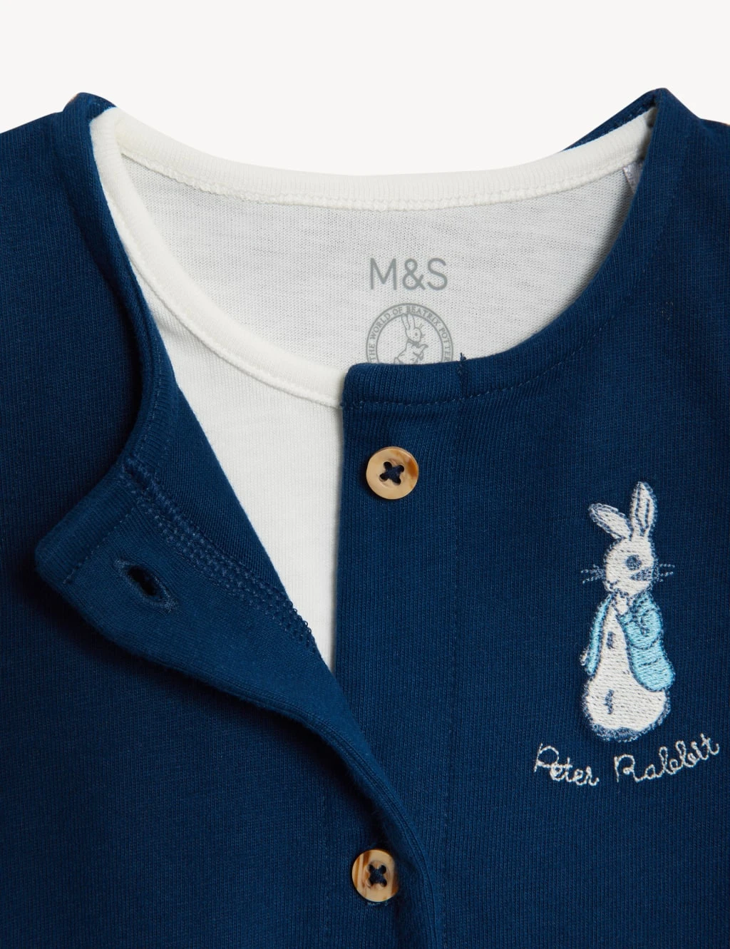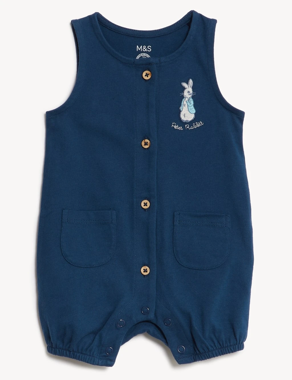 Dress your little one up for adventures with this pure cotton two-piece outfit. It includes a sleeveless, button-through romper suit with cute Peter Rabbit™ embroidery and two front pockets. Poppers at the gusset help with swift changes. The t-shirt also features poppers at the shoulder to make dressing super easy.