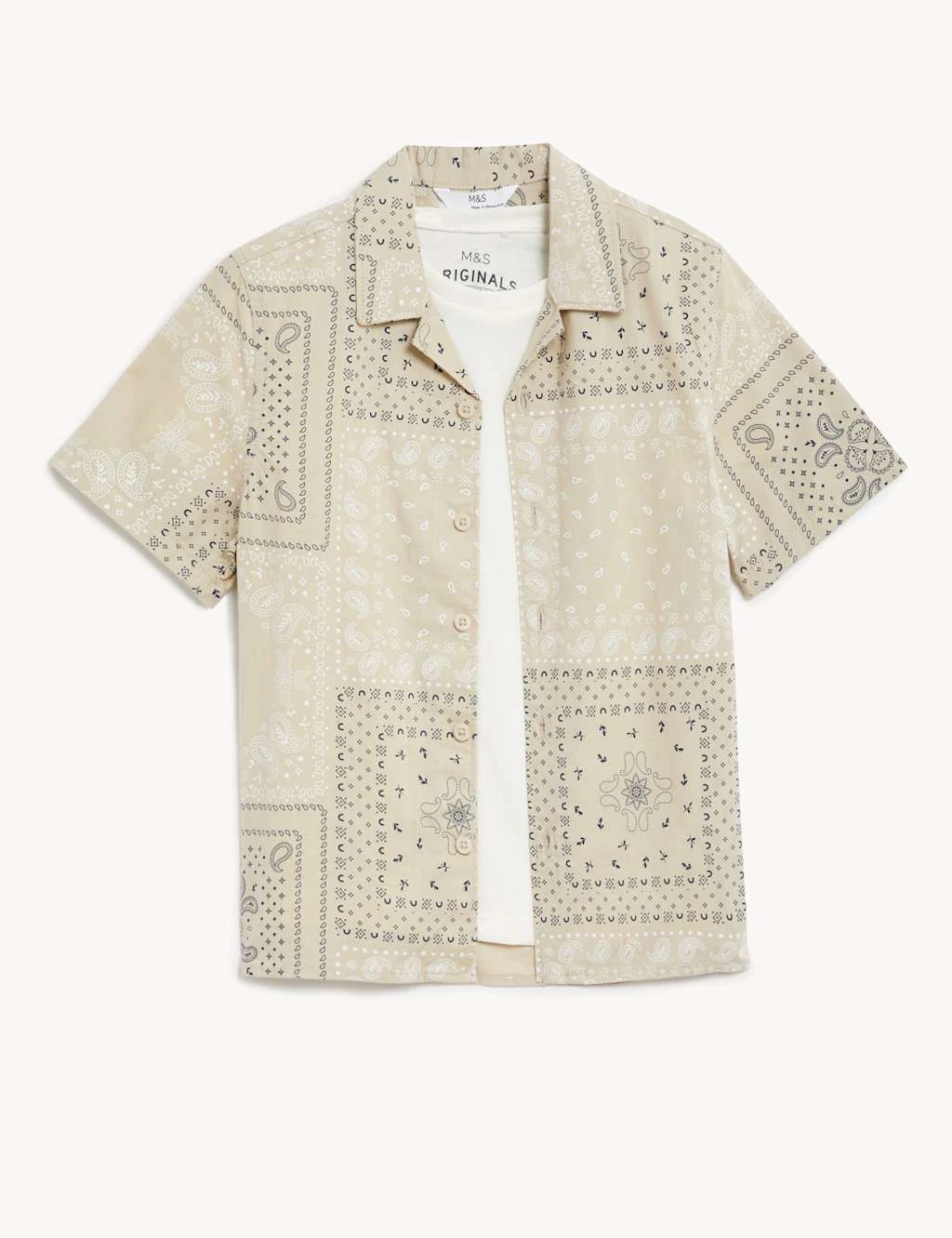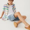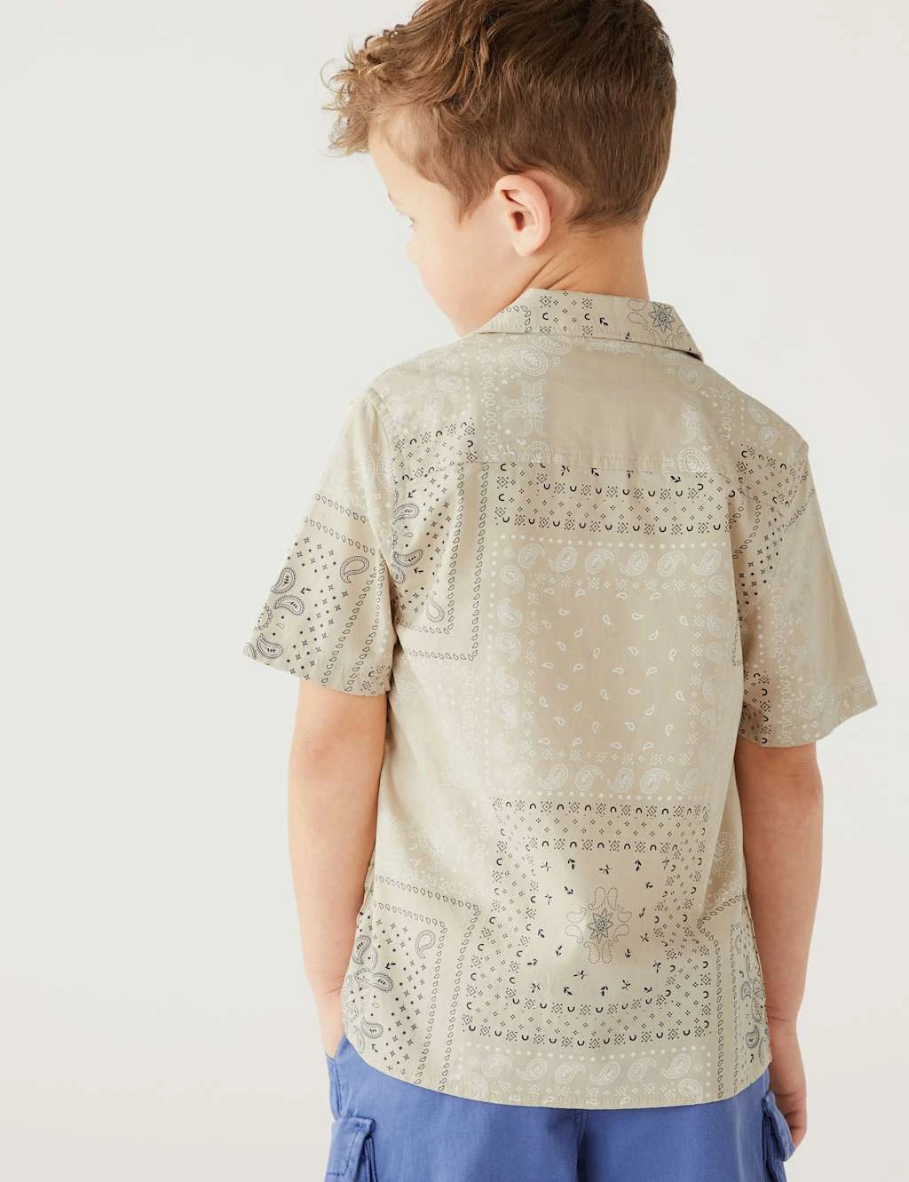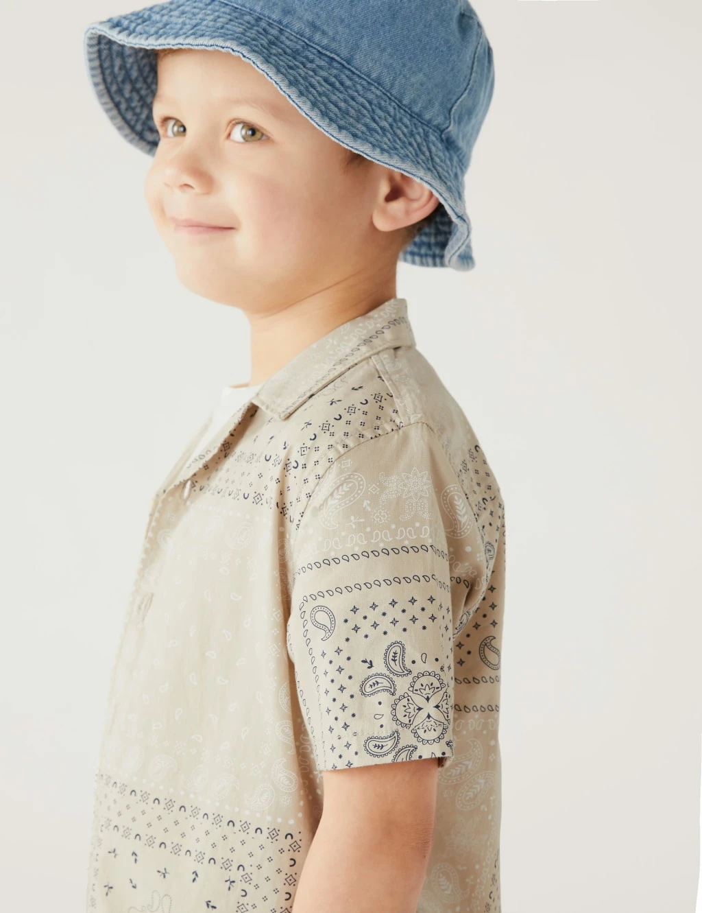 This pure cotton shirt and t-shirt set makes a cool addition to their summer wardrobe. It’s made in a comfy regular fit, with short sleeves. The collared shirt has an eye-catching bandana-inspired print, and is finished with neat button fastenings. An easy round neckline gives a casual air to the co-ordinating plain t-shirt.