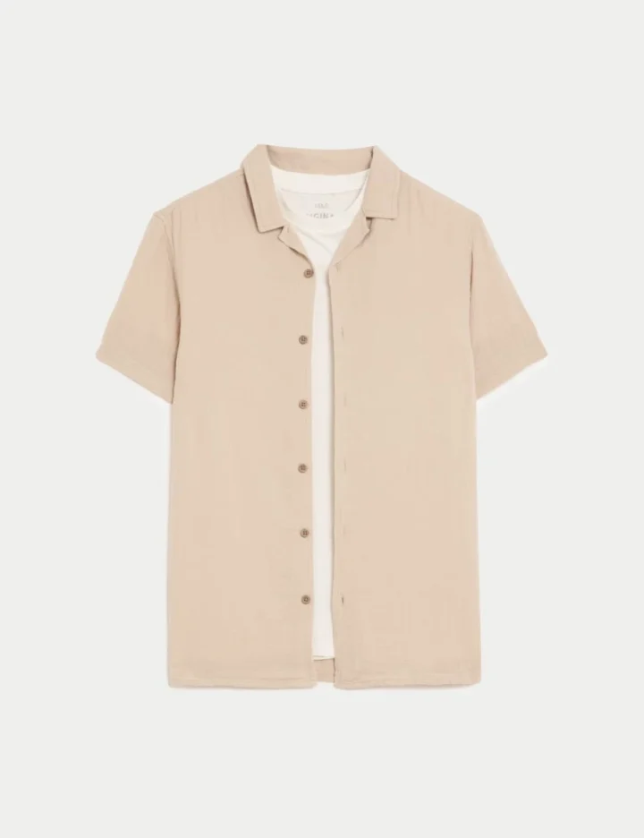 Kit kids out in smart style with this pure cotton short-sleeved shirt and t-shirt set. Comfy regular fit, made from textured double cloth fabric with a stylish resort collar.