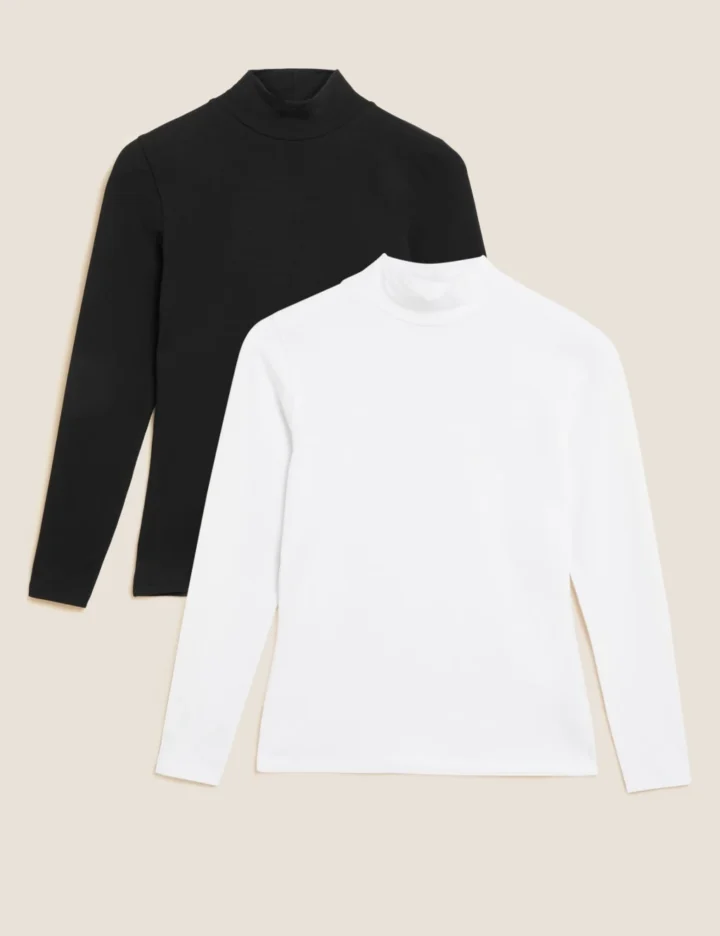 These cotton-rich long-sleeve tops will be your wardrobe favourites during the cooler months. Pack of two, designed in a comfy slim fit, with added stretch for easy movement. The funnel neck adds a sophisticated touch and provides extra warmth in chilly weather.