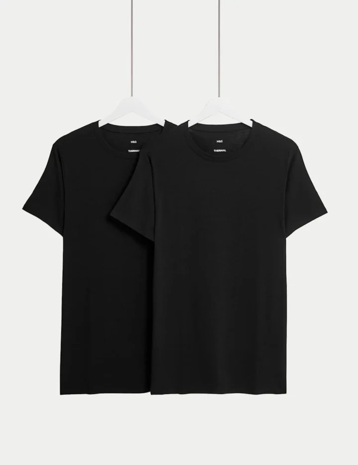 Our clever Heatgen™ technology uses an innovative fibre blend, helping your body to generate and retain heat so you can stay warm when the weather gets chilly. Perfect for a lightweight base layer, this pack of two thermal short sleeve tops come in a regular fit with a crew neck and short sleeves. Flexifit™ fabric made with Lycra® for 360 degree stretch and enhanced comfort. Moisture-wicking properties for all-day freshness. Super soft seams and heat-sealed labels ensure a gentle feel against your skin. Made with responsibly sourced viscose. We only ever use responsibly sourced cotton for our clothes.