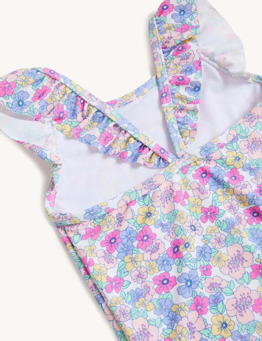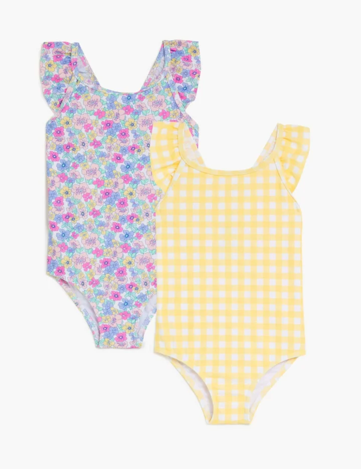 Make holiday packing easier with this two-pack of frill-detail swimsuits. Designed in a regular fit with added stretch for comfort. Featuring a gingham print and a floral print. Our Sun Smart UPF50+ technology helps to protect against harmful UV rays. Chlorine-resistant fabric ensures longer-lasting quality.