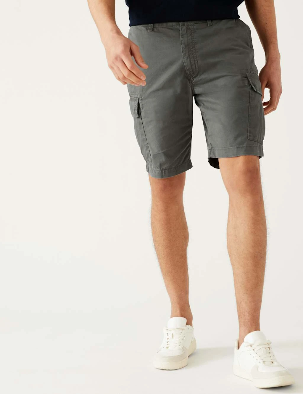 These lightweight cargo shorts combine comfort with practicality and style. Large flap pockets on the thighs have room for all your essentials. They’re made from pure, breathable cotton and fastened with a button and zip. Belt loops add an extra practical touch.