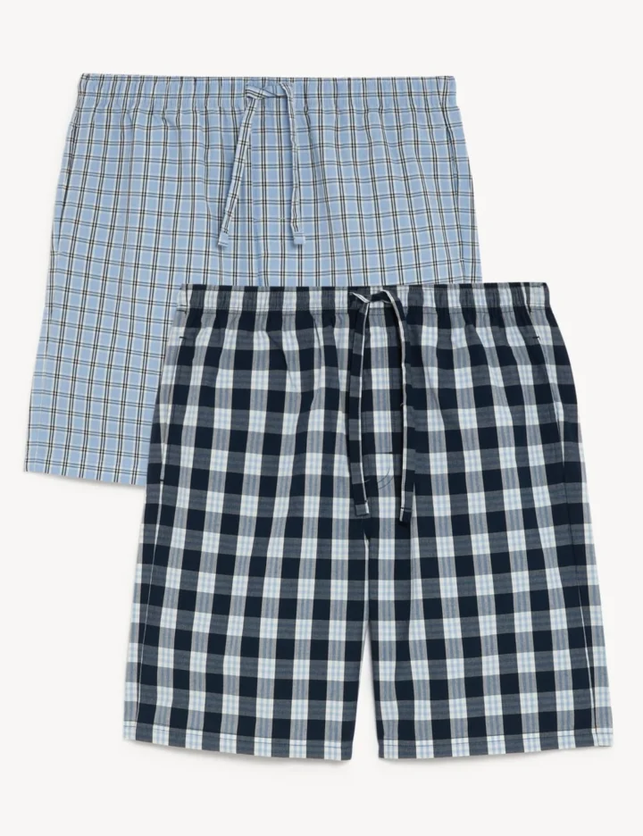 Relax in comfort at bedtime with these pure cotton pyjama shorts. Easy regular fit. Pull-on style with a comfy elasticated waist and drawstring fastening. Handy side pockets. Pack of two includes one with classic checks and one with a bolder checked print. We only ever use responsibly sourced cotton for our clothes. M&S Collection: easy-to-wear wardrobe staples that combine classic and contemporary styles.
