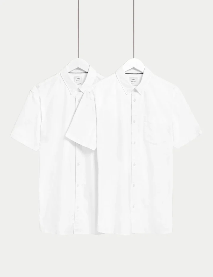 Get set for warmer weather with this pack of short-sleeved Oxford shirts. They’re cut to an easy regular fit from pure, breathable cotton. The button-down collars add a smart touch, while an easy-to-iron finish means they only need a quick press. We only ever use responsibly sourced cotton for our clothes.