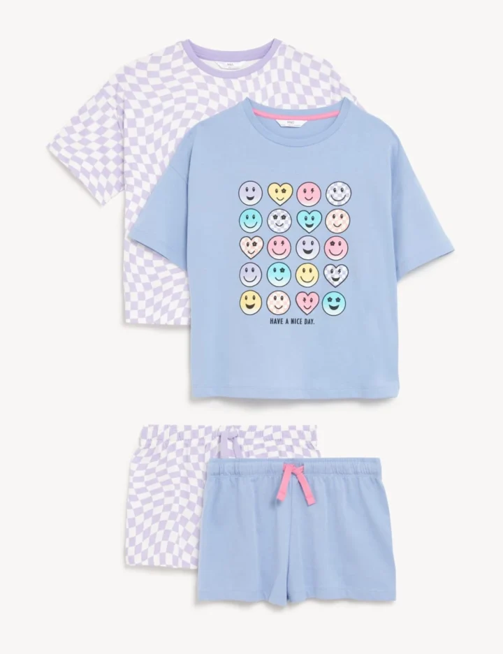 2pk Pure Cotton Patterned Short Pyjama Sets (6-16 Yrs)