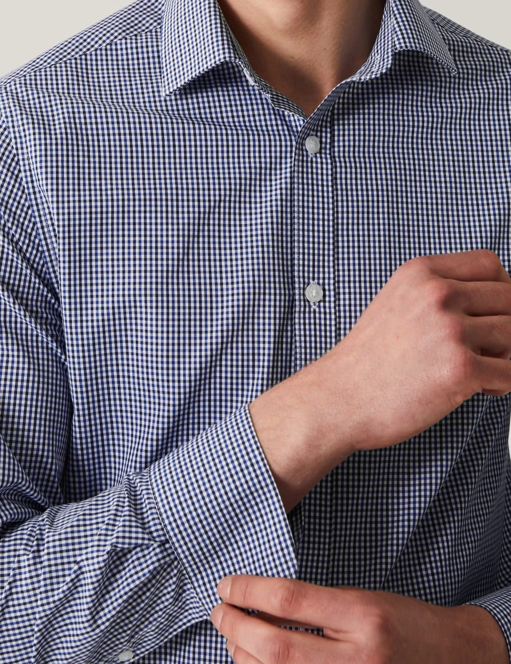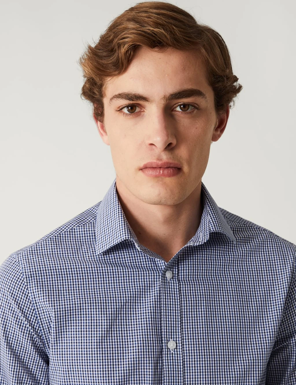 Update your wardrobe with these cotton-blend gingham shirts. Sleek slim fit. Classic single cuffs for a look that works with a wide range of smart and casual outfits. Easy-to-iron finish means they need no more than a quick press before wearing.