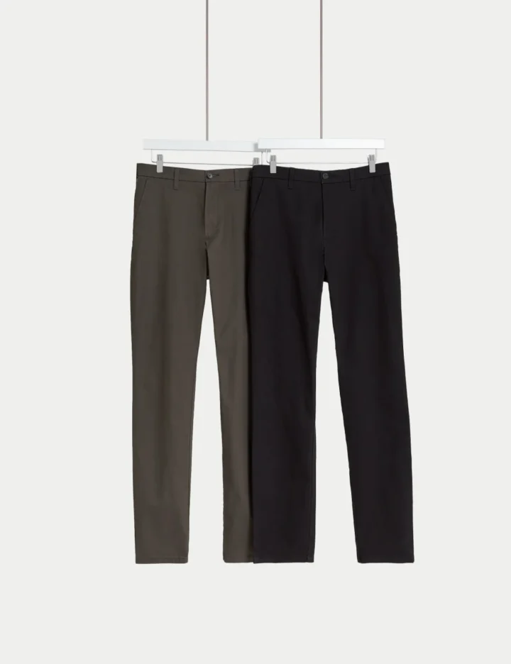 Stock up on smart-casual basics with this two-pack of cotton-rich chinos. Contemporary slim fit with added stretch. Button and zip fastening. We only ever use responsibly sourced cotton for our clothes. M&S Collection: versatile styles in modern shapes with unique and playful details.