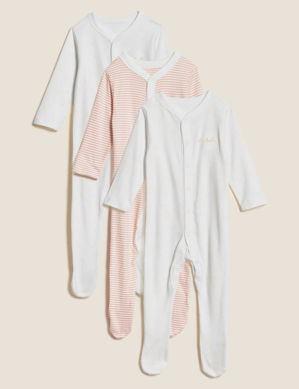 3 Pack Personalised Pure Cotton Sleepsuits