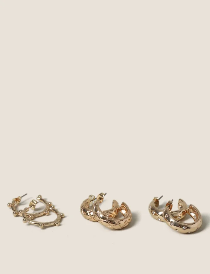 3 Pack Textured Hoop Earrings