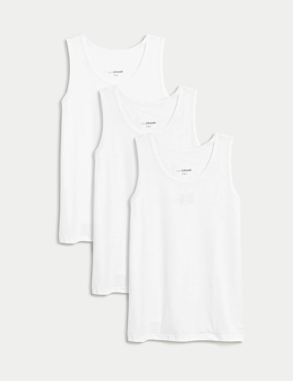 These cotton-rich vests add a breathable extra layer for cooler weather. Sleeveless design, with 4-way stretch for a smooth, comfortable wear. Our Cool Comfort™ fabric draws moisture away from your skin, while our antibacterial Cool & Fresh™ technology helps you feel dry and fresh throughout the day. We only ever use responsibly sourced cotton for our clothes.