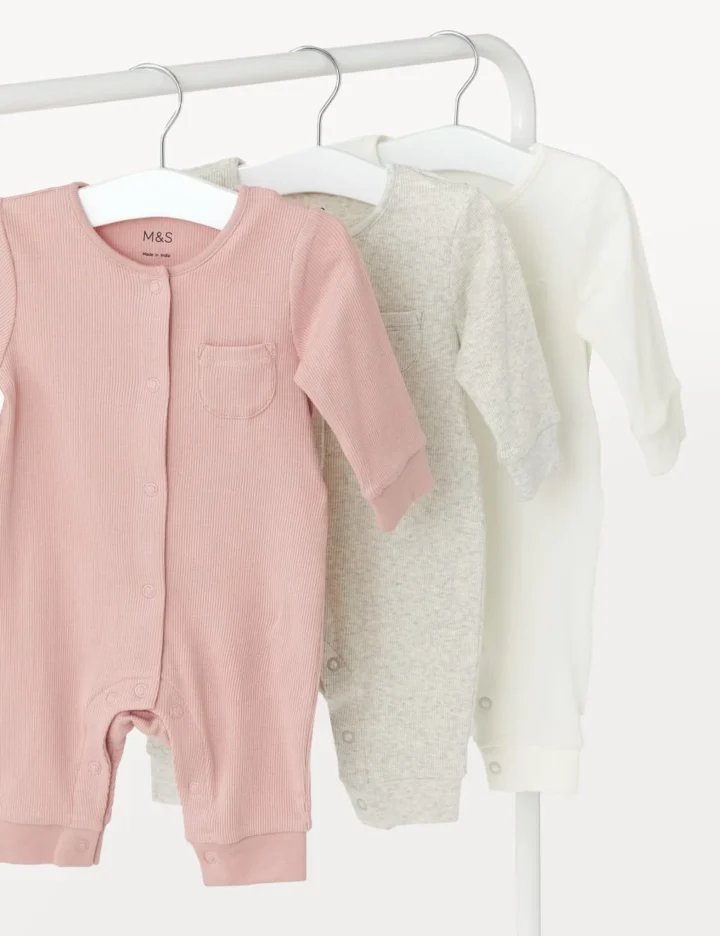 Dressing your little one for bedtime is made simple with our three-pack of cotton-rich sleepsuits. Ribbed, footless designs so toes can wriggle freely. All fasten with poppers throughout for fuss-free dressing. Made with added stretch for comfort. Finished with a cute pocket on the chest.