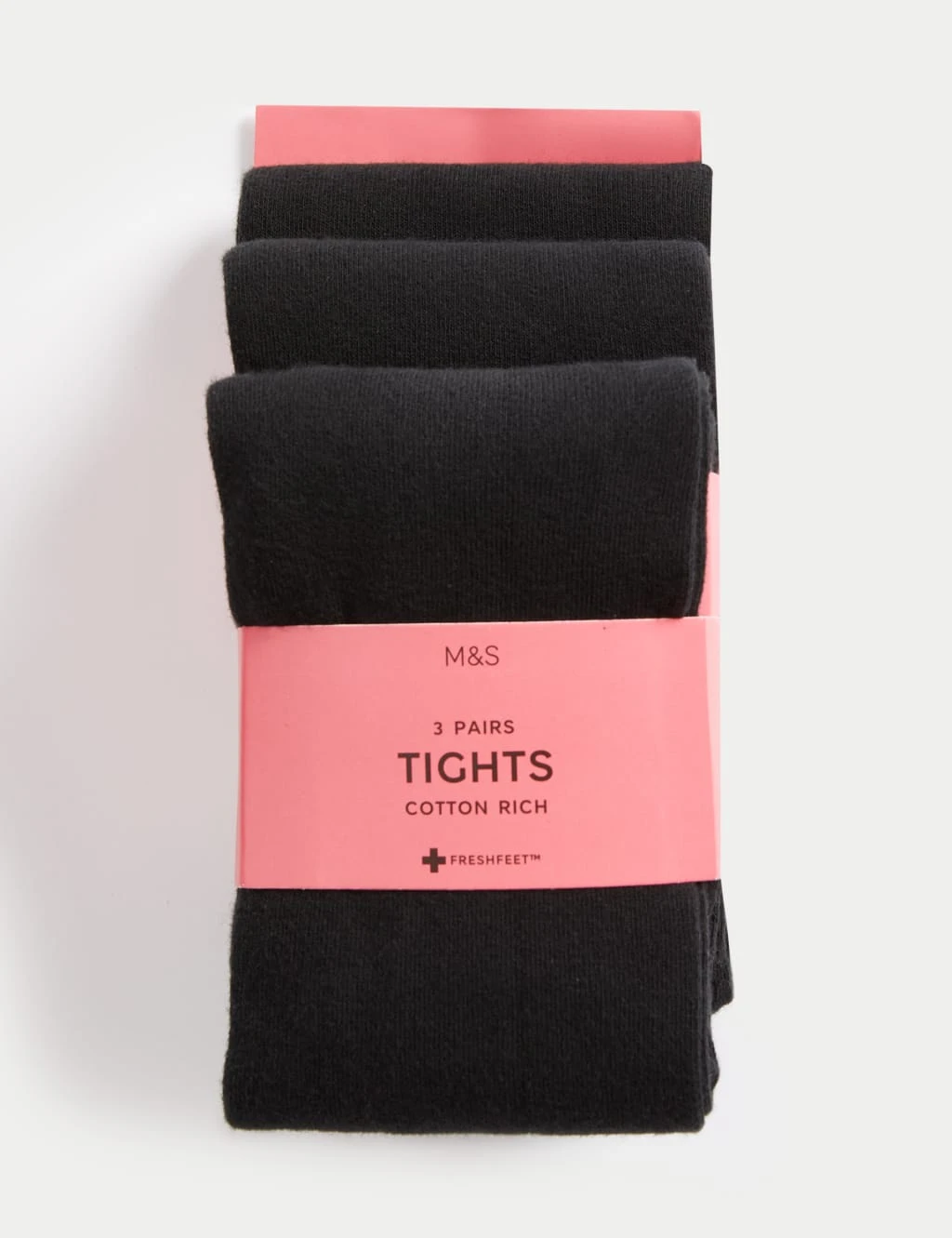 This three pack of school tights has been made using high quality materials and innovative technologies to help kids get more wear out of them. Made from a breathable cotton blend with added stretch to provide comfort and a great fit, these kids’ school tights have been finished with our Freshfeet™ antibacterial treatment to keep them odour free for longer. We only ever use responsibly sourced cotton for our clothes.