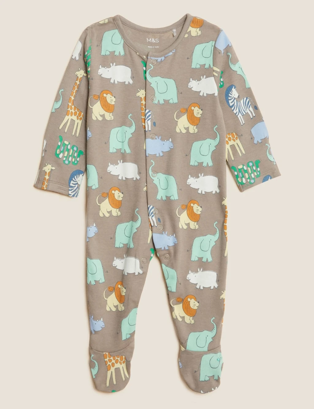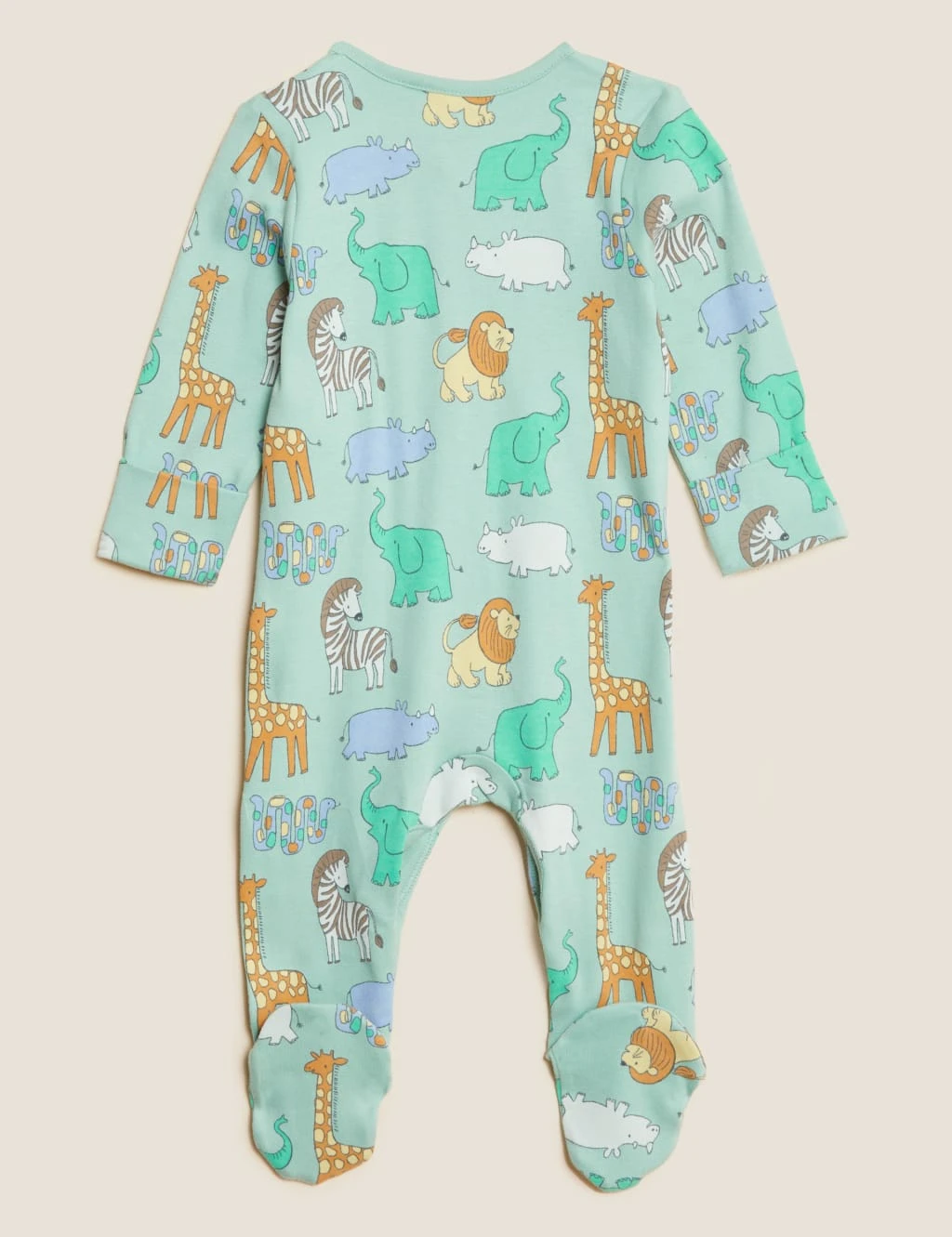 3pk Pure Cotton Safari Sleepsuits (0-3 Yrs)