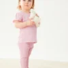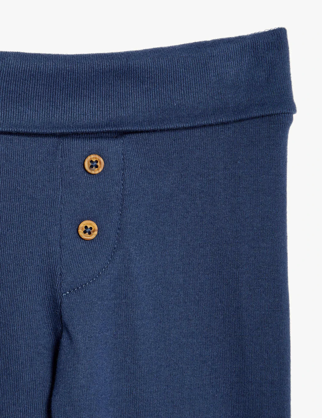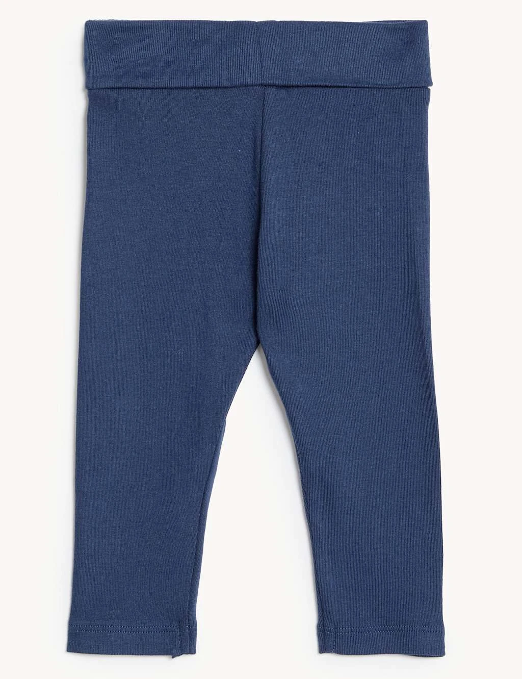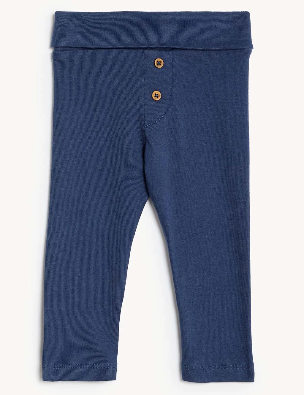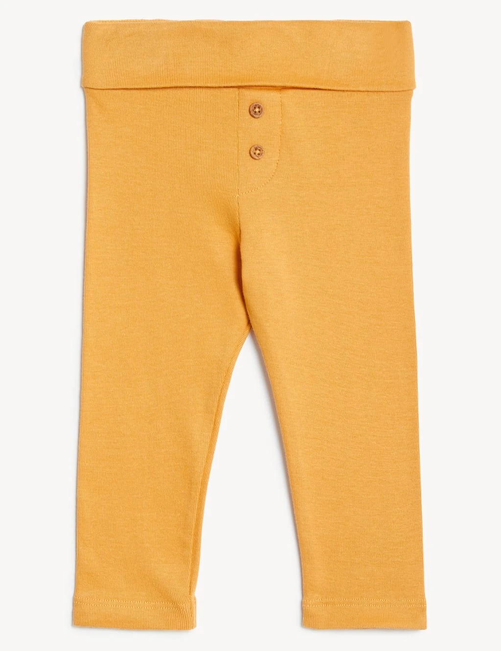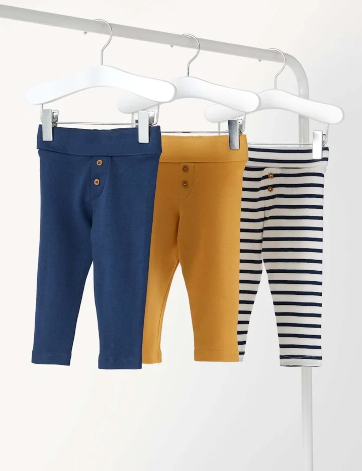 These pure cotton leggings are extra handy for your little wriggler. Pack of three includes two plain styles and one striped. Pull-on design for easy dressing. Finished with two cute wooden buttons.