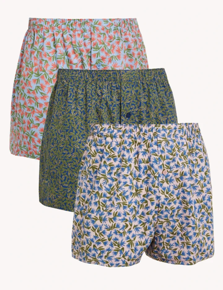 3pk Pure Cotton Tropical Print Woven Boxers