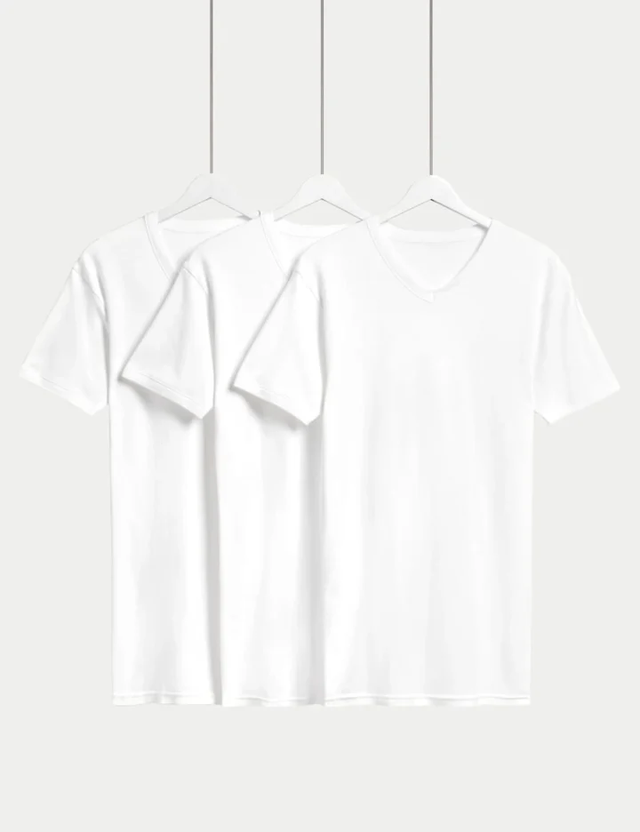 3pk Pure Cotton V-Neck T-Shirt Vests