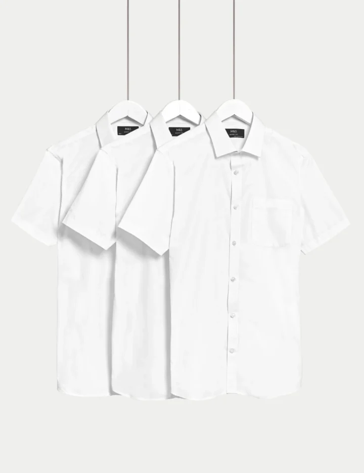 For a wardrobe essential that is as stylish as it is practical, this three pack of short sleeve shirts will keep you looking sharp. These men’s shirts come in a slim fit for contemporary appeal and a short sleeve design makes it ideal for warmer months. With a classic collar and fixed bones, each shirt is finished with a pocket and is Easy to Iron, providing convenience as well as style. We only ever use responsibly sourced cotton for our clothes.