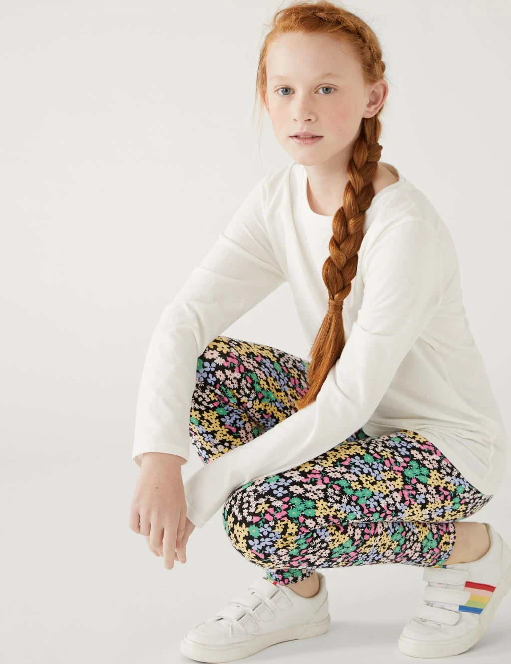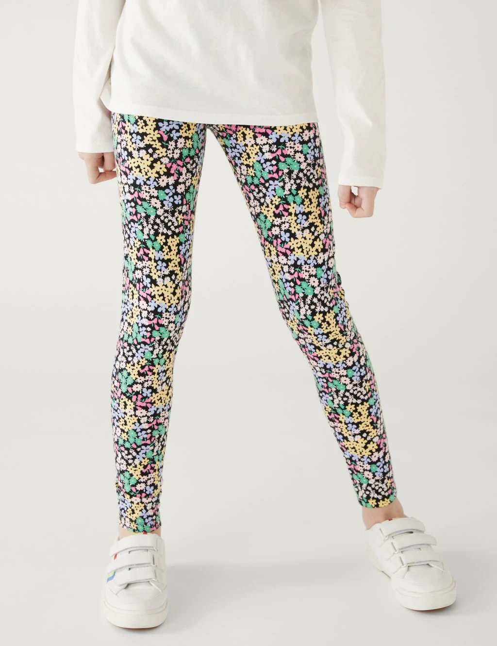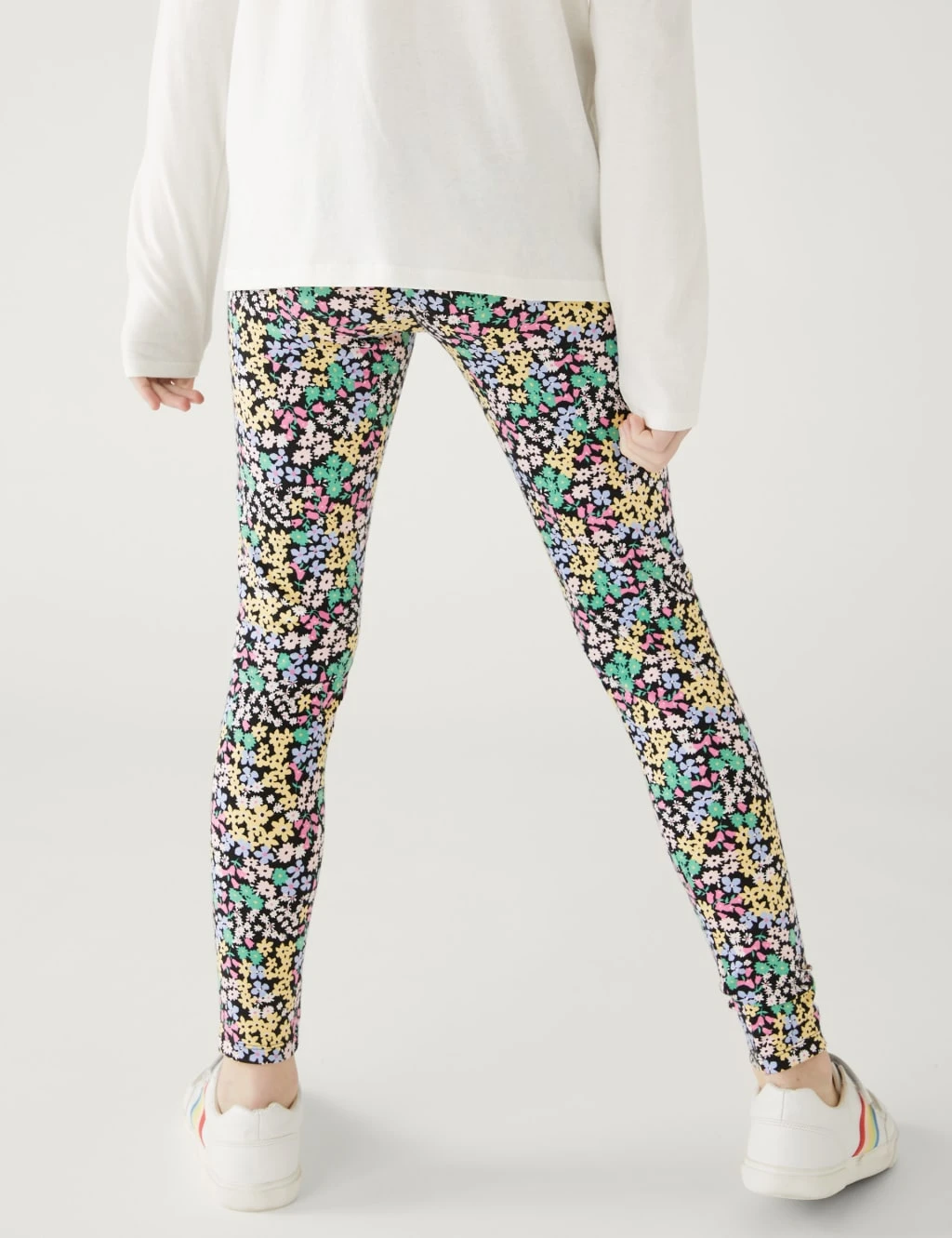 Stock up on their essential items with this pack of four cotton-rich leggings. Regular fit, with added stretch and an elasticated waist for comfort. The pack includes three plain pairs and one with a bright floral print.