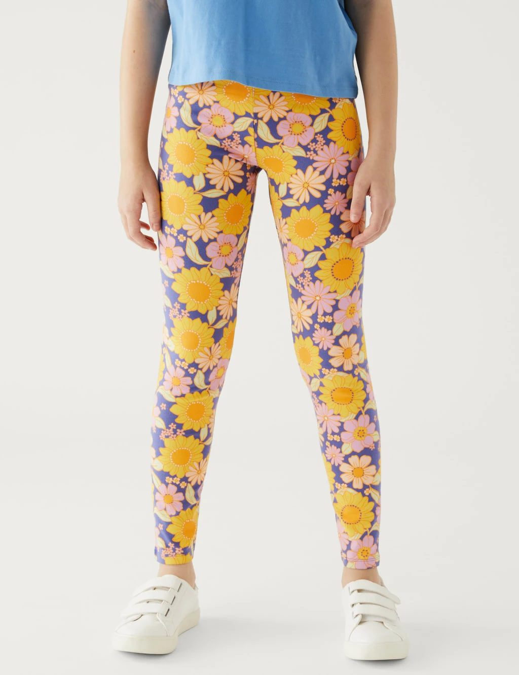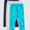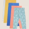 These kids’ leggings are made from cotton-rich fabric for effortless wear. Regular fit, with comfy elasticated waistbands. Pack of four, with three plain pairs and one with a floral print.