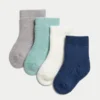 These cotton-rich ribbed baby socks will keep their feet cosy. Made with added stretch for all-day comfort. Pack includes four pairs of socks in contrasting colours.