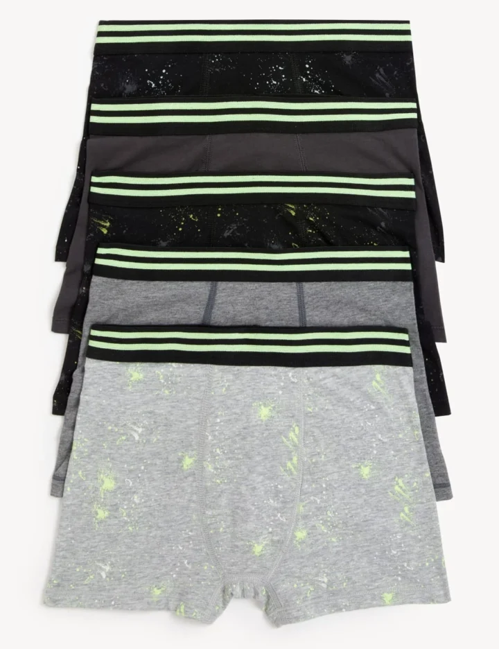 This pack of five cotton-rich trunks features a fun range of paint splatter designs. With striped elasticated waistbands and added stretch for comfort. Stay Soft fabric ensures a soft feel against the skin, while StayNew™ technology keeps them looking brighter for longer. We only ever use responsibly sourced cotton for our clothes.