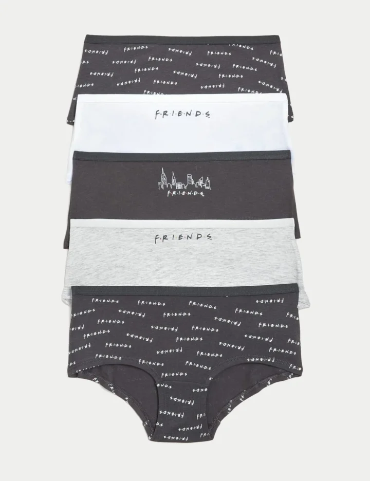 These cotton-rich knickers are printed with the iconic Friends™ logo for a playful feel. Comfy shorts shape, with added stretch for easy movement. Our StayNew™ and Stay Soft finishes keep fabrics looking and feeling their best for longer. Five-pack contains a mix of placement and all-over prints. We only ever use responsibly sourced cotton for our clothes.
