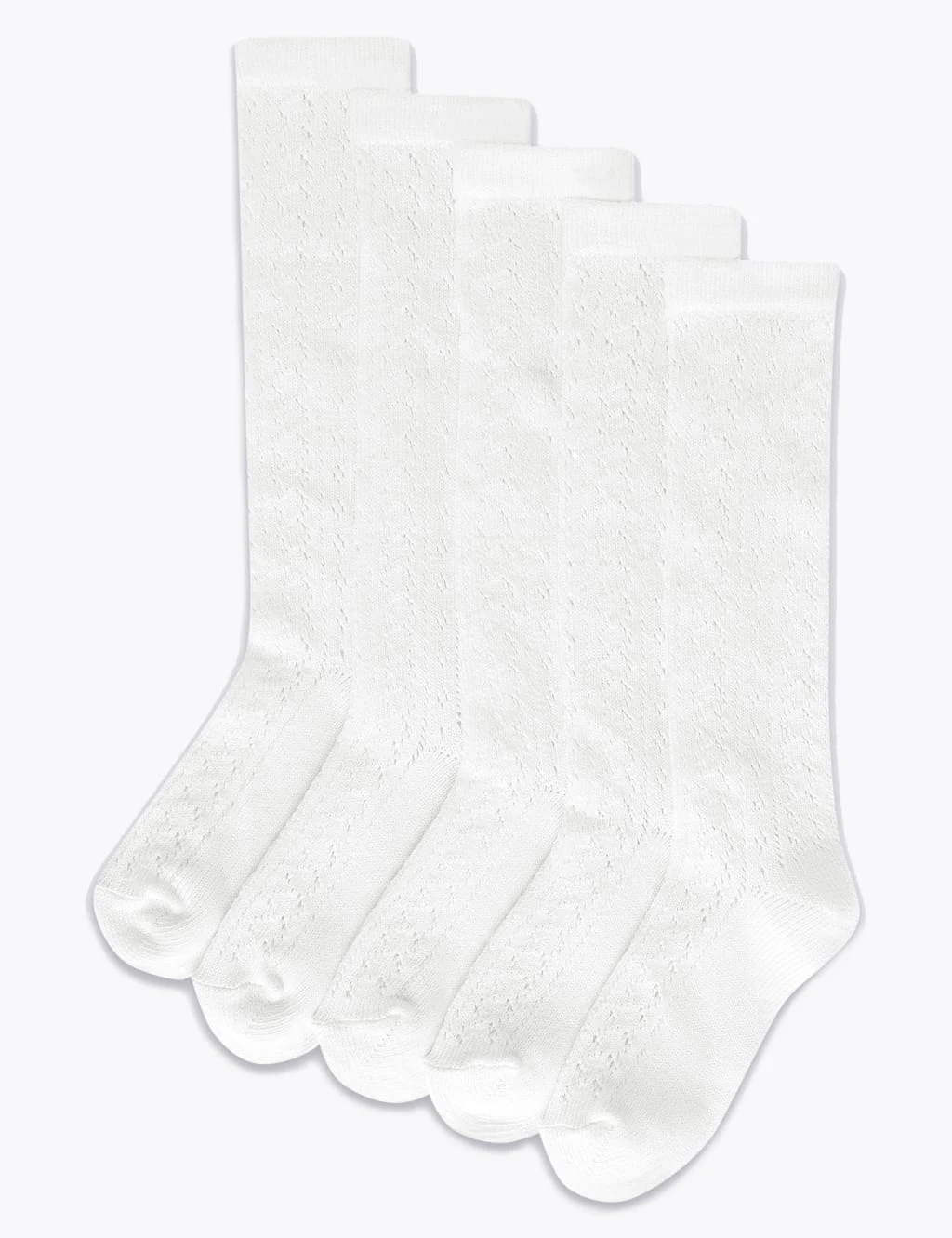 With a pretty pelerine style to elevate their everyday look, this five pack of children’s socks is a great way to fill up their drawers with everyday essentials. These knee high socks are made from a soft and cosy cotton mix and have been finished with our Freshfeet™ technology to combat bad odours. We only ever use responsibly sourced cotton for our clothes.