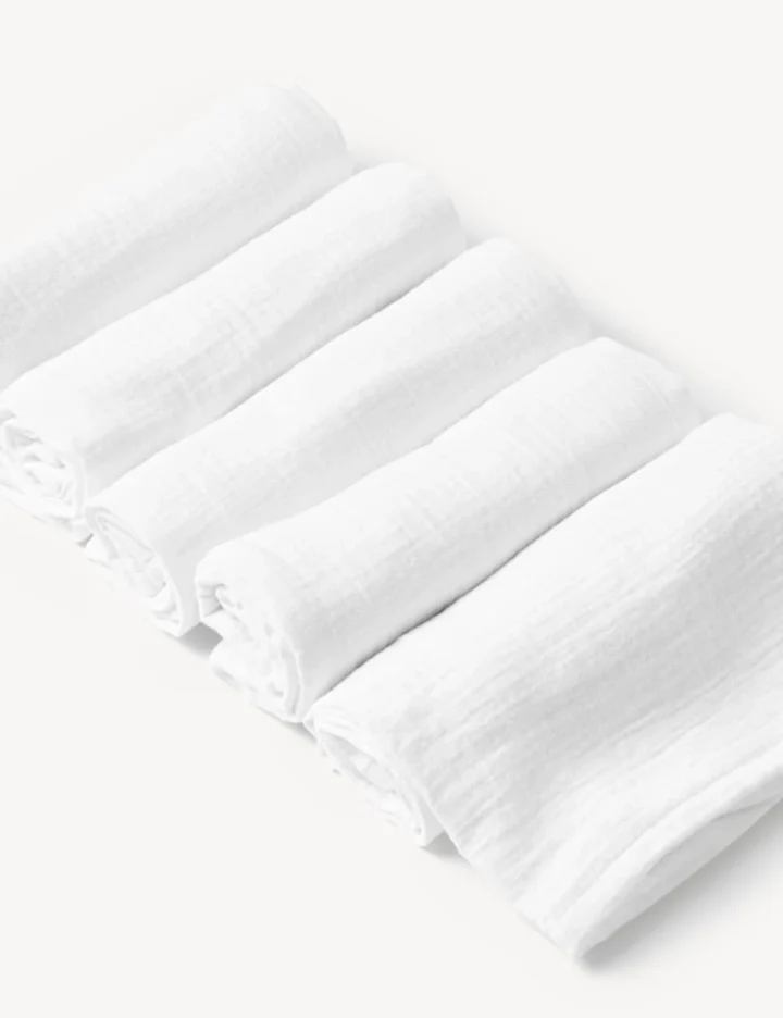 Muslins are an everyday must-have and our pure cotton squares come in a handy pack of five. The gently textured cotton is both soft on baby’s skin and easy to wash.