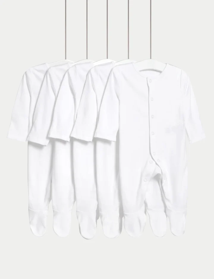 5pk Pure Cotton Sleepsuits (5lbs-3 Yrs)