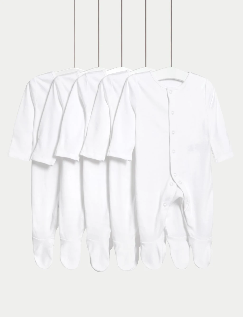 Send them off to sleep feeling cosy and warm with these pure cotton sleepsuits, made with integral scratch mitts up to 3 – 6 months and anti-slip technology on 9 – 12 months and over. Baby safe toes prevent seams from irritating delicate skin, while the popper fastenings make this five pack of baby sleepsuits easy to pop on and off.