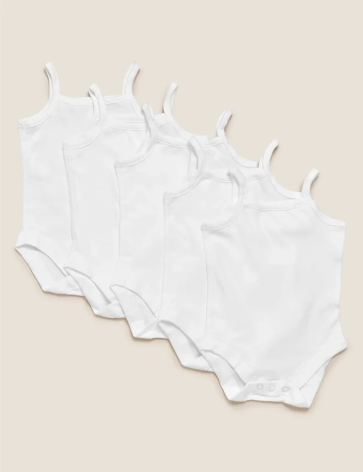 5pk Pure Cotton Strappy Bodysuits (6½lbs-3 Yrs)