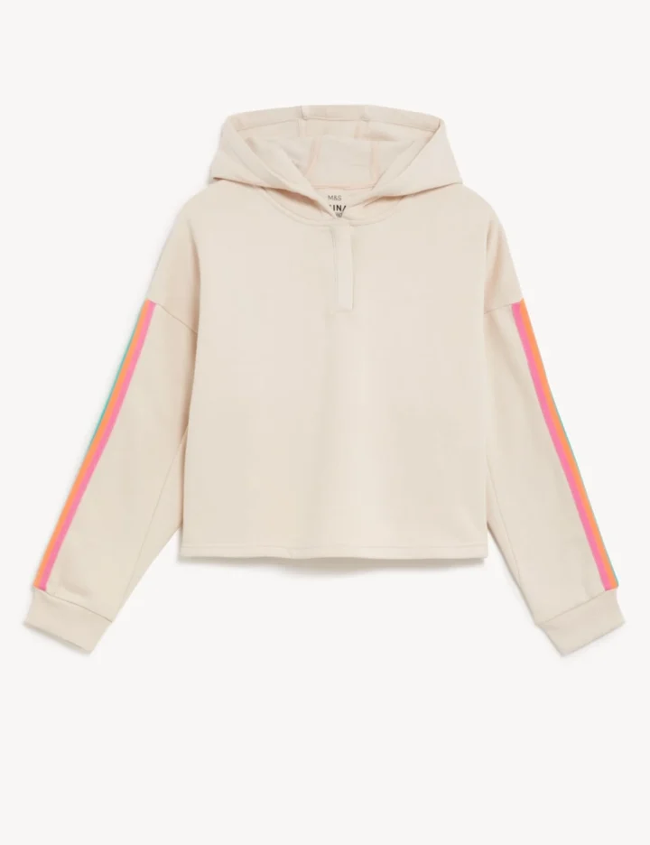 Keep kids comfy with this adaptive cotton-rich hoodie. Its boxy, oversized fit ensures roomy comfort, while a riptape fastening at the neck makes dressing easier. Hidden labels are soft on skin. Finished with cool stripes down the side of the arms.
