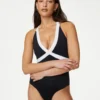 Make a poolside statement in this striking animal print swimsuit from Sosandar. It’s designed with an elegant v-neckline and adjustable slim straps for a comfortable fit. The sculpting fabric smooths and shapes your figure, while the ruched bust creates a flattering silhouette. This one-piece is finished with gold metal hardware on the belt, giving an added touch of glamour.