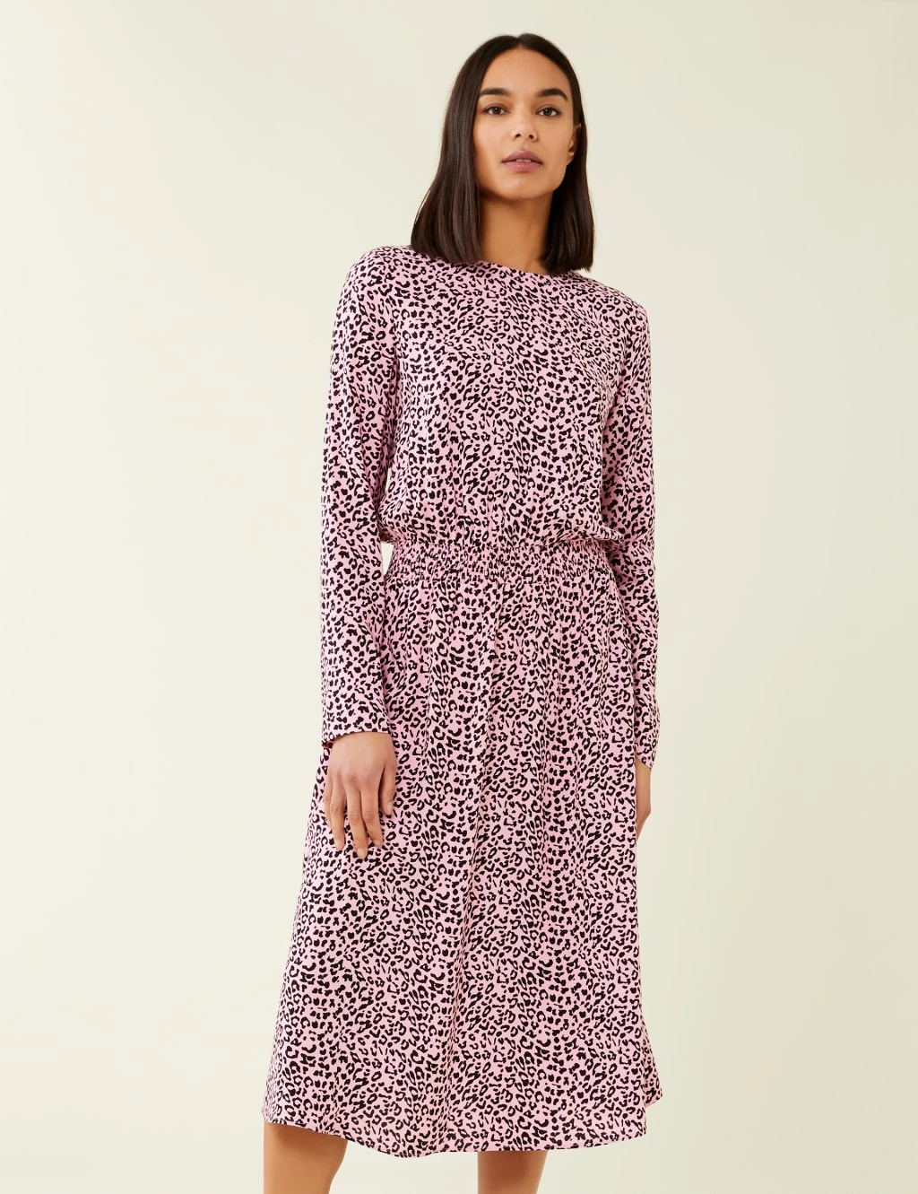 This animal print piece from Finery London is a modern take on the classic tea dress. It’s cut to a regular fit from drapey fabric that falls to a versatile knee length. Shirring nips in the waist for a flattering silhouette, while long sleeves add extra elegance.