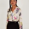 A statement animal print lends a glamorous feel to this blouse from Sosandar. It’s made in an effortless regular fit for a classic look. Shirring along the hem and on the cuffs provides shaping and subtle volume through the long sleeves. This blouse is finished with feminine frill detail along the edge of the v-neck.