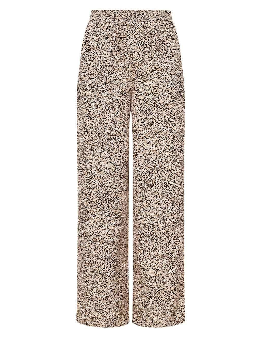 A lively print of leopard spots gives these stylish trousers from Little Mistress a bold look. They have a flattering high-waisted cut and wide legs. Made from a drapey fabric, the trousers hang down elegantly, with a pair of side pockets for practicality. The stretchy elasticated waist ensures they’re a comfortable fit.