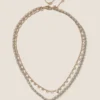 This Autograph Fresh water pearl necklace is layered upon a sleek 2 row fine gold chains. This style is made with recycled materials