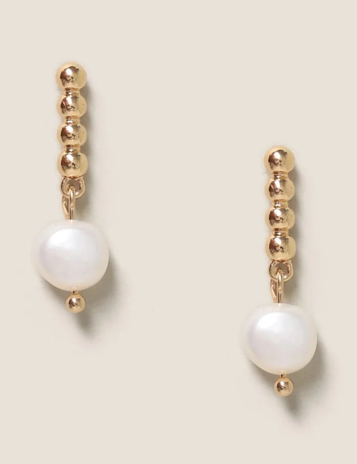 These autograph glass pearl mini drop earrings are the perfect earring for everyday wear.